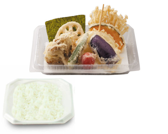 しっかり野菜! 玉ねぎ、えのき、なす、舞茸、レンコン、ミニトマト、オクラ、のりが入っています。